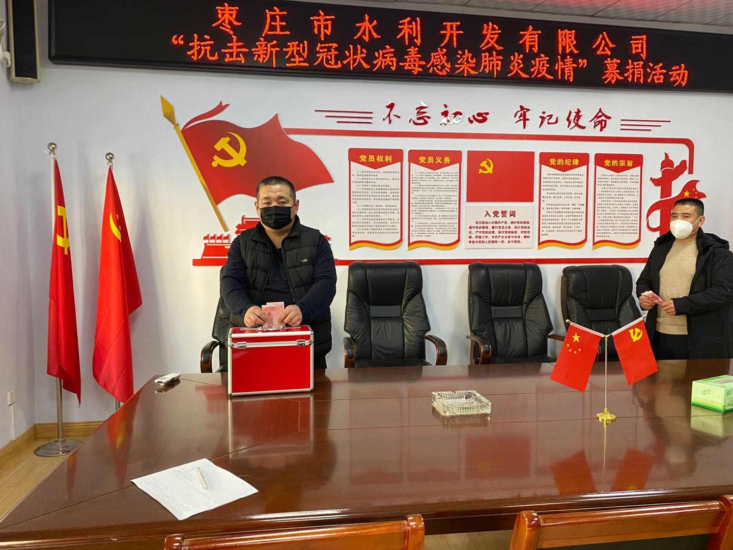 疫情無情,人間有愛。為支持新冠肺炎疫情防控工作,棗莊市水利開發(fā)有限公司執(zhí)行董事、總經(jīng)理岳磊攜公司全體黨員干部職工,于32日組織開展了抗擊疫情獻(xiàn)愛心捐款活動(dòng),以捐款的方式支援疫情防控工作,積極為抗擊疫情貢獻(xiàn)力量。