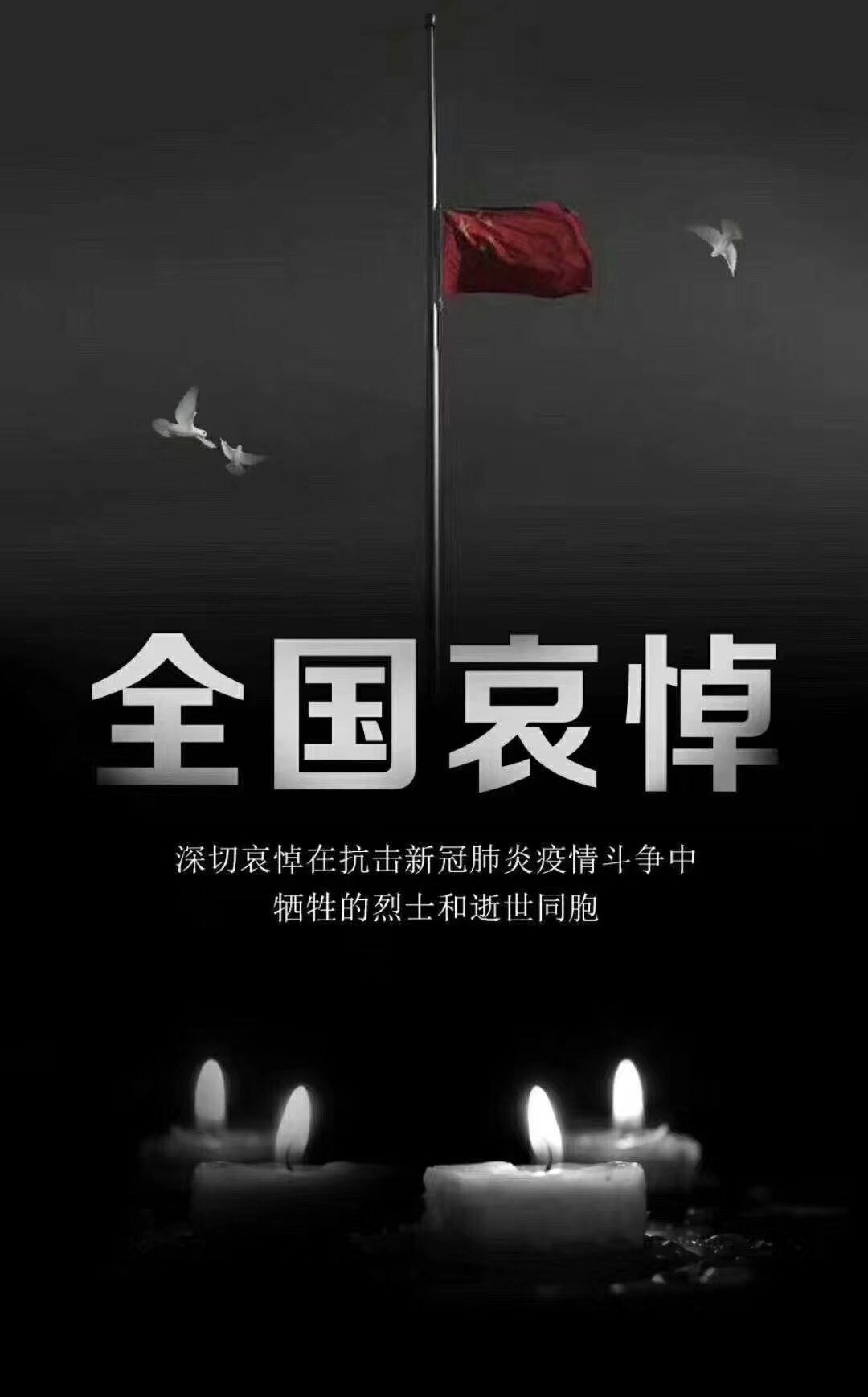 44日,全國(guó)舉行哀悼活動(dòng),表達(dá)對(duì)抗擊新冠肺炎疫情斗爭(zhēng)犧牲烈士和逝世同胞的深切哀悼。在此期間,全國(guó)和駐外使領(lǐng)館下半旗志哀,全國(guó)停止公共娛樂活動(dòng)。